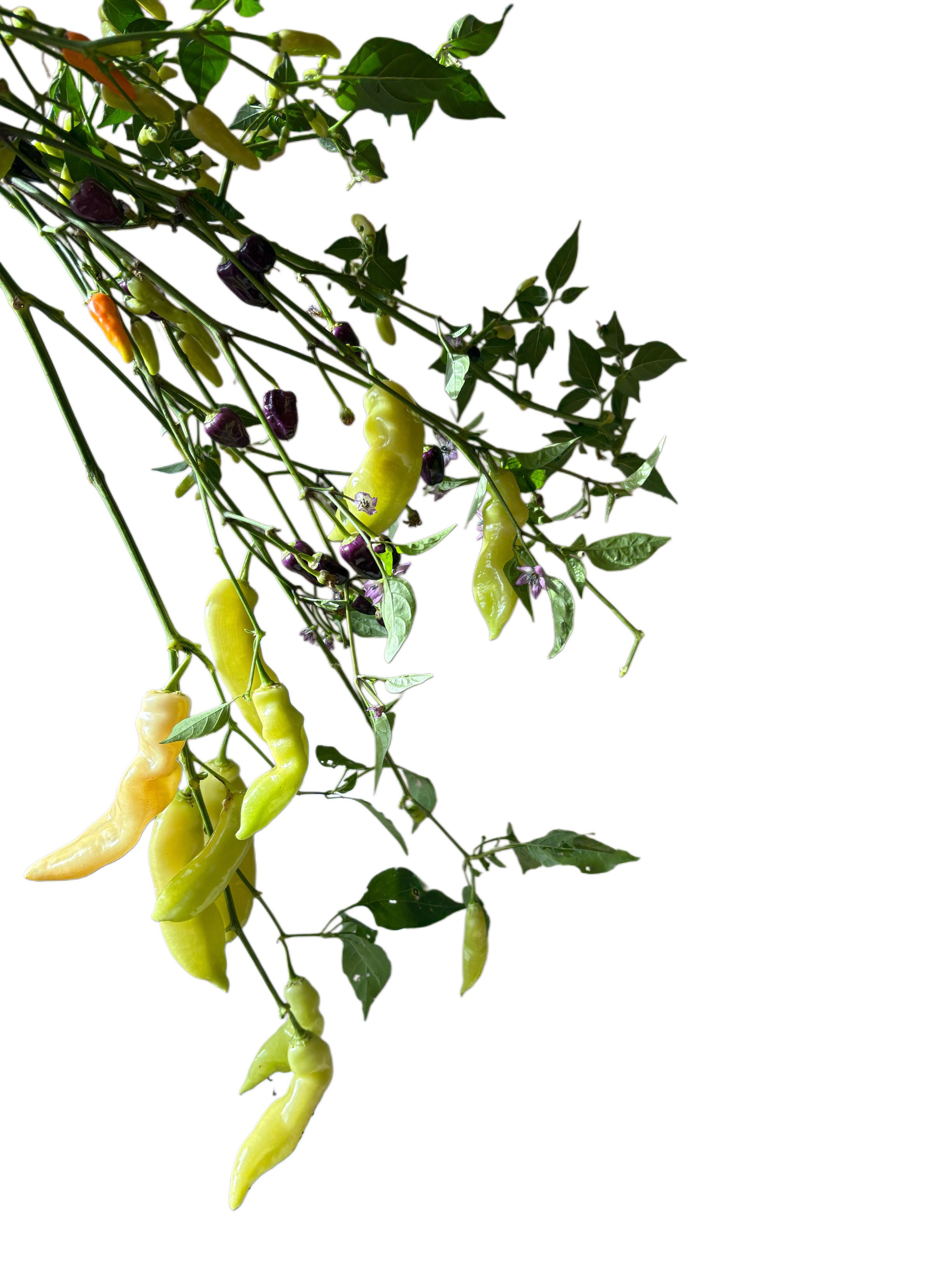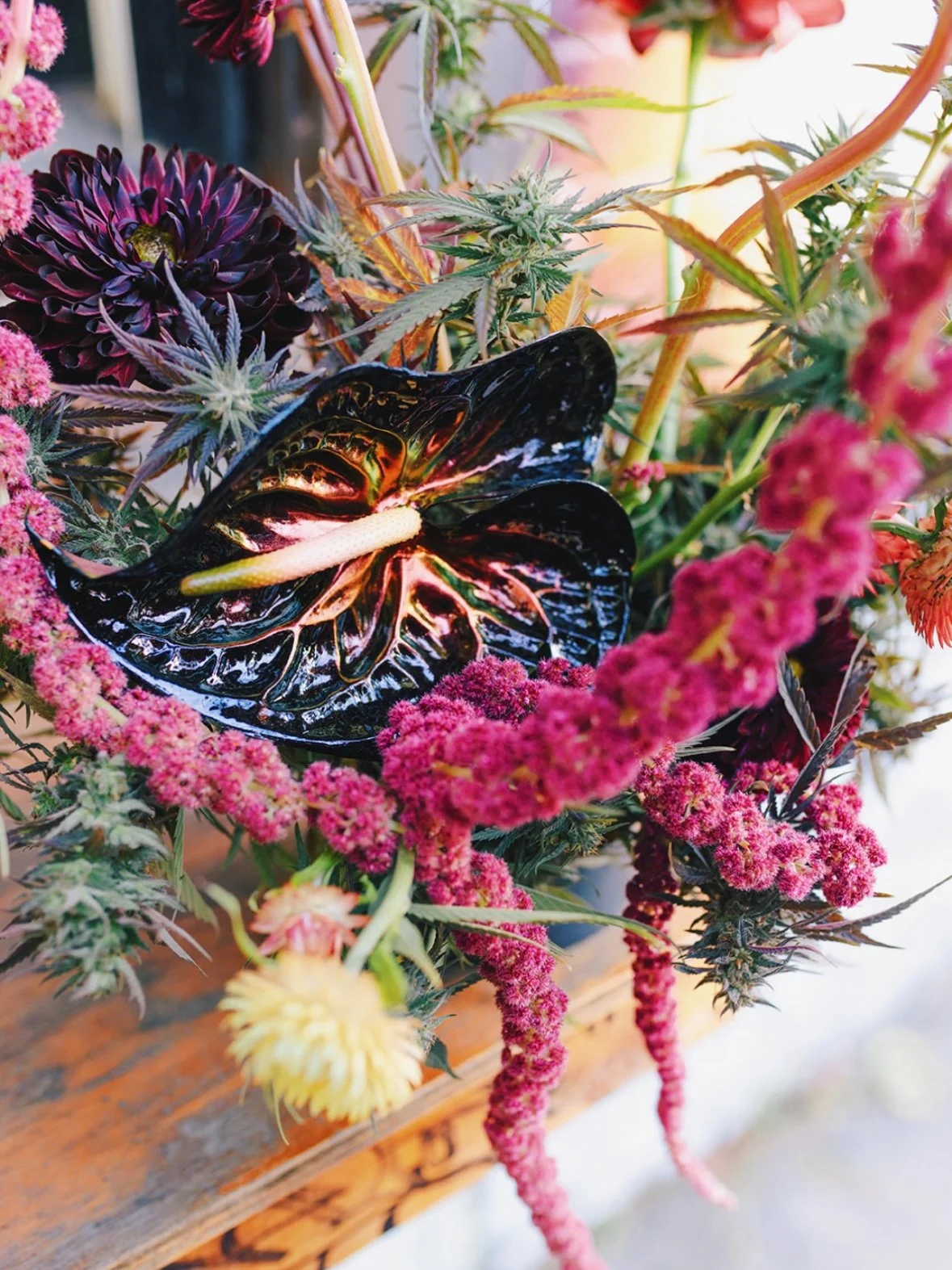 We specialize in installs incorporating garden grown flowers, produce and vegetation. Funky adds like peppers, hemp or veggies can really make an install a work of art.